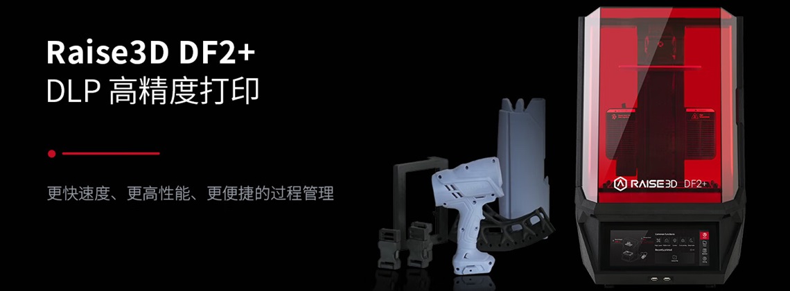 一机多能:应对耐高温、韧性与柔性等复杂应用 ·高强度光源:Raise3D DF2+ DLP 3D打印机搭载 4000 μW/cm² 光强与德州仪器 DLP 模组,保证曝光均一性与长周期稳定性,确保充分固化,兼顾速度与精度。 · 灵活工艺可调:在 ideaMaker® 中可自定义层厚、曝光功率等关键参数,快速适配不同树脂与应用需求。 ·OMP 开放式平台:Raise3D DF2+ DLP 3D打印机支持第三方树脂验证,并配备专属工艺包。无论是高冲击、耐高温、阻燃、防静电还是生物相容性材料,都能即插即用,快速完成验证,助力材料创新。 注塑级表面与装配精度,保证零件可靠性 ·细节:Raise3D DF2+ DLP 3D打印机基于 DLP 技术的高准直光源与 78.5μm 像素分辨率,结合抗锯齿算法,实现亚像素级细节呈现,清晰保留复杂微结构。 ·高精度装配:通过软硬件协同与工艺补偿,DF2+ DLP 3D打印机可实现 ±0.15% XY 尺寸公差,确保配合件装配严密可靠。 ·RFID 智能管理:在切片阶段预先补偿光固化收缩变形,并通过 RFID 端到端数据流转,自动匹配清洗与固化参数,确保尺寸精度稳定可控。 ·光滑表面:低剥离力打印与轻触支撑设计,让 DF2+ DLP 3D打印机能降低层纹与后处理量,表面质感媲美注塑零件。 智能工作流,更省心、更高效 ·RFID 全流程驱动:Raise3D DF2+ DLP 3D打印机搭载 RFID 技术,能自动存储和读取整个工作流的相关参数文件,设备自动配置 DF2+ 打印机、DF Wash 和 DF Cure 的打印、清洗与固化参数,减少人为误差,形成闭环化智能工作流。 ·精简的树脂管理:DF2+ DLP 3D打印机支持自动树脂补给、超声波液位检测和辅助树脂槽清理,大幅减少人工与光固化树脂的接触。DF Wash 通过自动排液和易于操作的自动泵简化了溶剂去除过程。 Raise3D DF2+ 高效简化的工作流 第1步: 预处理与切片 打开Raise3D的切片软件ideaMaker®,导入3D模型,配置打印参数(自动方向调整、轮廓补偿、空心结构、自动支撑),并设置后处理!(清洗和固化) 第2步: 开始打印 启动DF2+DLP 3D打印机,并点击“打印”,设备会自动进行预检,确认无误后立即开始打印。 第3步: 后处理 打印完成后,取下模型,并进行清洗和固化。Raise3D DF2+ DLP 3D打印机的RFID技术自动传输所有数据,无需人工干预,提升效率与致性。 第4步:工作流完成 成品轻松取出,即可投入使用或进行后续装配。依托 DF2+ DLP 3D打印机的高精度光固化系统,每个模型都能实现好的细节与表面质量。