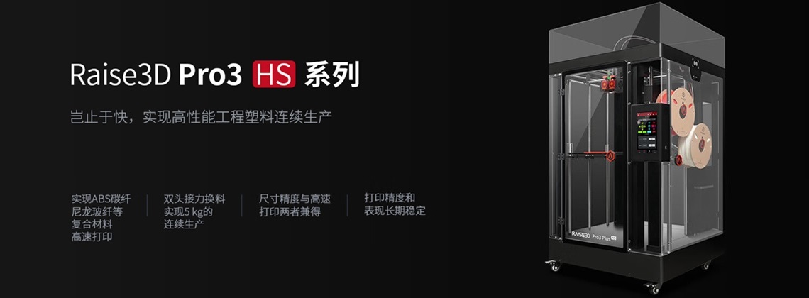 Raise3D Pro3 HS系列支持以200-300mm/s的速度对适合用于终端应用的Hyper Core高性能复合材料进行高速打印,对于Industrial系列复合材料也能提供100-150mm/s的打印速度,满足用户的高标准和要求,提高生产效率和产品质量。由于支持高性能复合材料,即使在要求苛刻的终端应用中,打印出的部件也能有效发挥性能。